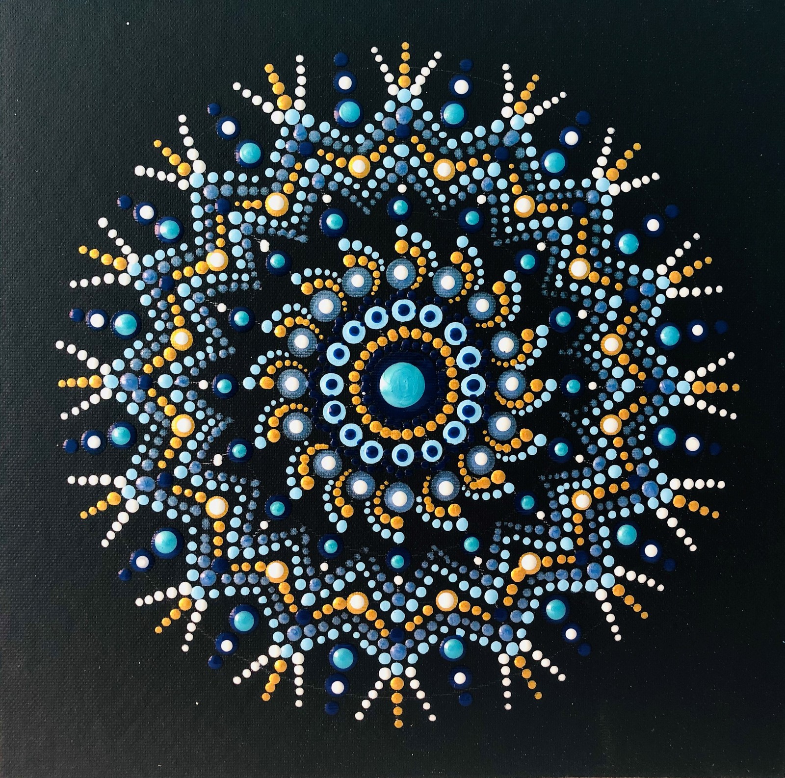 Jsem Blíženec, a jak je známo Blíženci rádi zkoušejí nové a nové věci. To mě přimělo zajít do kurzu malování tužkou, pastelem a tečkování mandal nebo orientálního tance. Každý kurz mi dal a dává něco nového. Kromě nových technik a zkušeností, také nová přátelství. U mandal mě očarovala ta přesnost a rovnováha, kterou ze sebe vyzařují. Myslela jsem si, že je to hrozně složité namalovat něco takového. Neustále dokola jsem přemýšlela: „Jak je možné, že jsou díly a tečky tak přesné a pravidelné. Nechápu, nechápu a musím na to přijít.“ Viděla jsem několik videí a dodnes se jimi nechávám inspirovat. Nakonec jsem se přihlásila do kurzů tečkované mandaly a právě tento kurz mě oslovil nejvíc. Moje první mandala byla vytvořena pro mého muže, v jeho oblíbených barvách. Pak už jsem zkoušela míchat barvy, tečkovat nové tvary a tvořila.